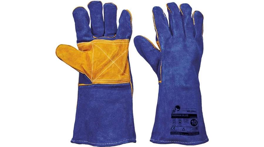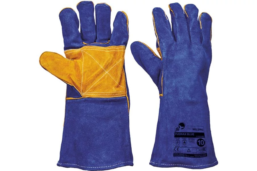 Bőr hegesztő védőkesztyű hasított marhabőrből, hossza 35 cm, erősítés a hüvelyk és a tenyér között
