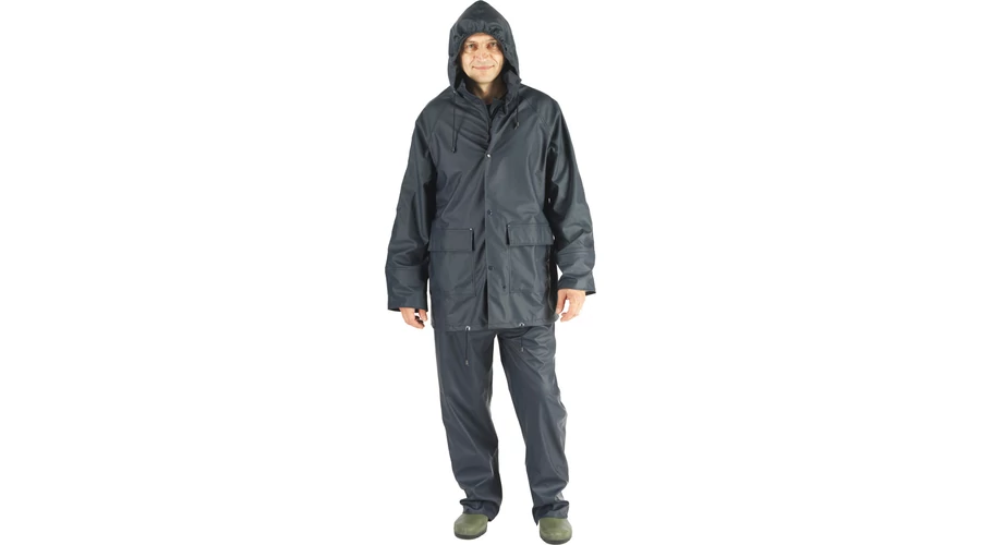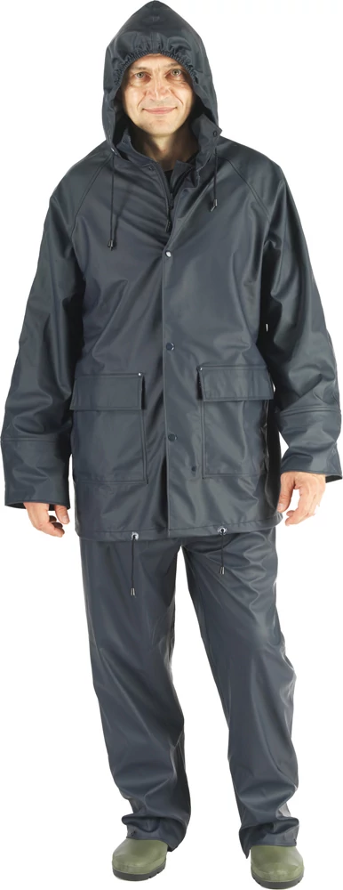• KÉTRÉSZES RUHA (kabát+deréknadrág): kapucnis, cipzáros+patentos kabát, két zsebbel