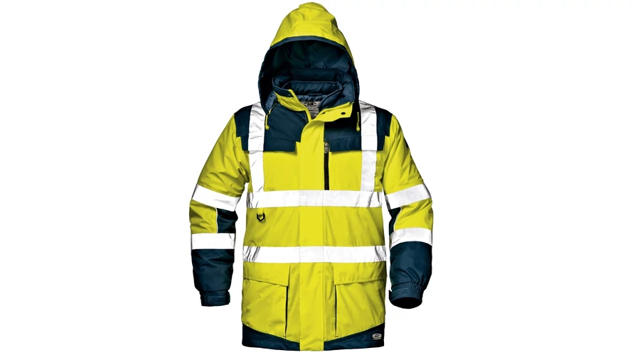 Regimental többrészes kabát. 4in1, poliészter külső rész, Clippertex borítással, kivehető béléssel (180gr). Egész évben használható, ujjak is lecsatolhatók. Telefonzsebbel, gumis csuklóval, 2 vízhatlan zsebbel, 2 belső zsebbel, D-gyűvűvel. A mellzseben, vállakon fényvisszaverő elemek. Mellkason fényvisszaverő csík, ez a belső kabáton is megtalálható. EN 343 EN ISO 20471 Class:3
