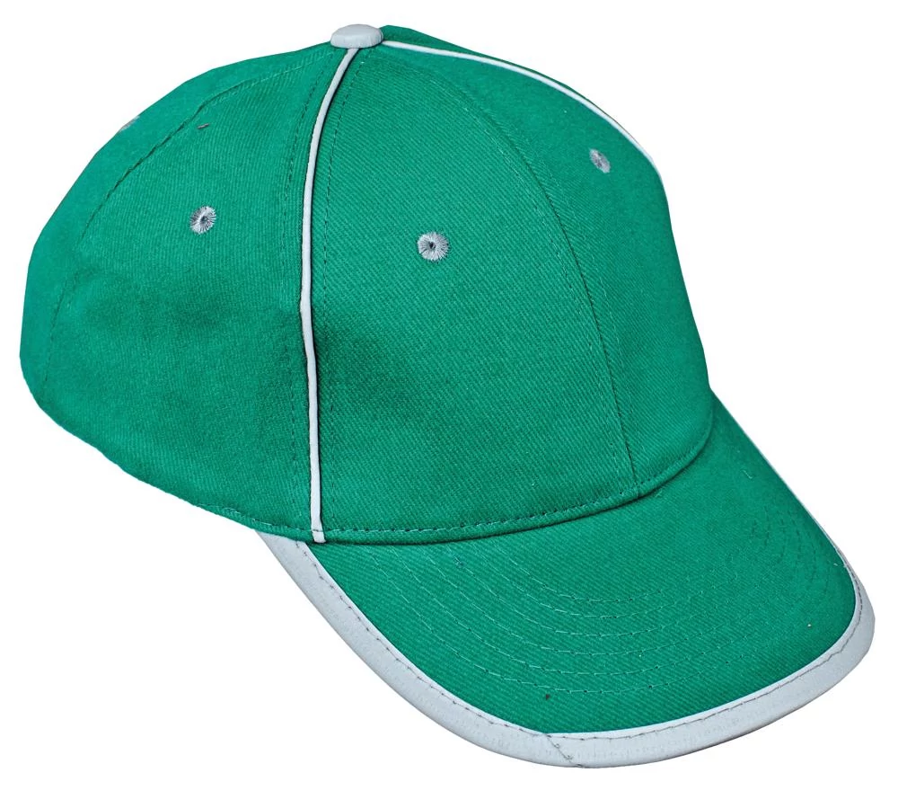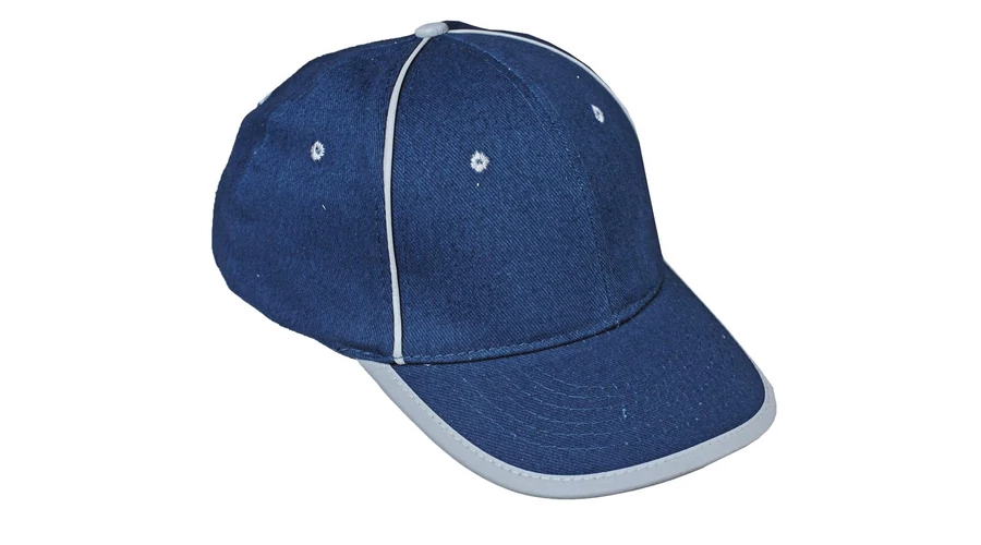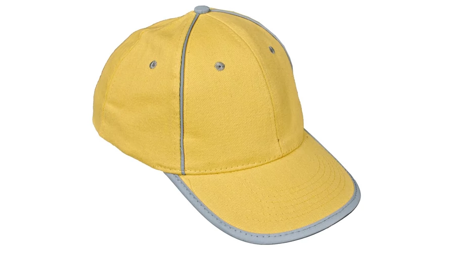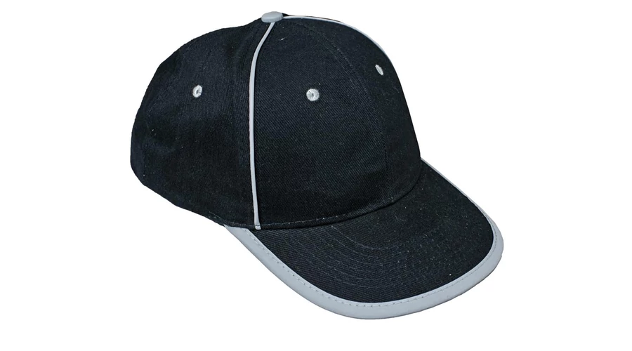 Tépőzárral állítható fejbőségű baseballsapka fényvisszaverő kiegészítőkkel.