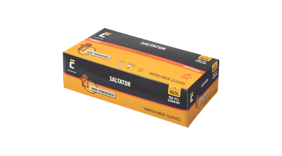 Egyszerhasználatos, Trilite anyagból (latex, nitril és neoprén) készült, nem steril kesztyű