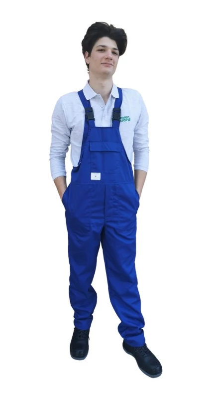 245 g/m2 kopásálló, sávoly kötésű, 65% poliészter, 35% pamut alapanyag folyadéklepergető védőruházat, korlátozott védelmet nyújt kisnyomású vagy fröccsenő, folyékony vegyszerek ellen (pl. kénsav, lúg, o-Xilol és butanol) – 6. típusú és PB (6) típusú védőeszköz biztonsági kettős lánc-, plusz háromfonalas szegőöltés a zsebeken tépőzáras zsebfedők, vagy a zsebek nyílása függőleges irányú, így megakadályozzák a folyékony vegyi anyagok bejutását SZÍN: királykék