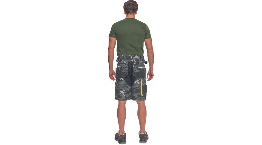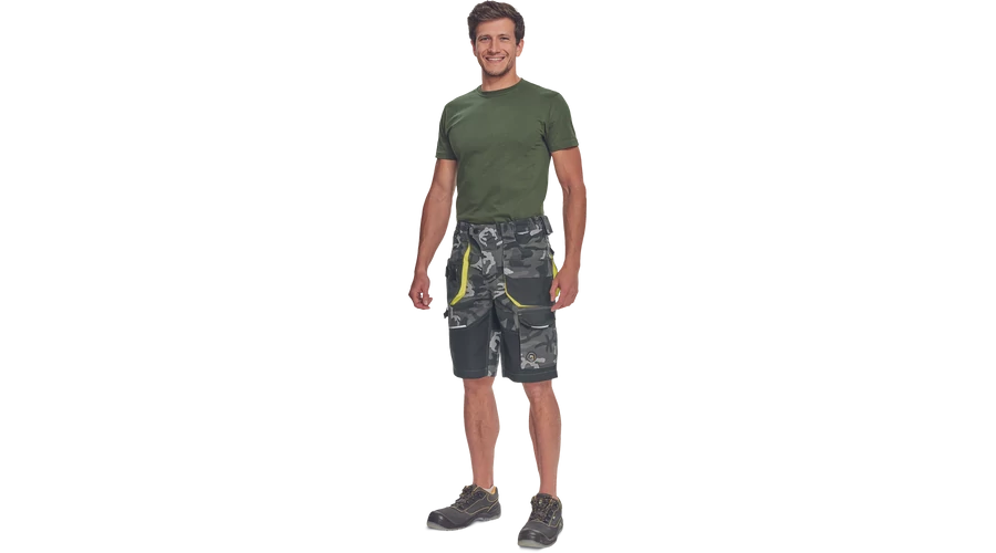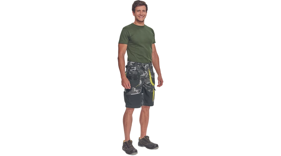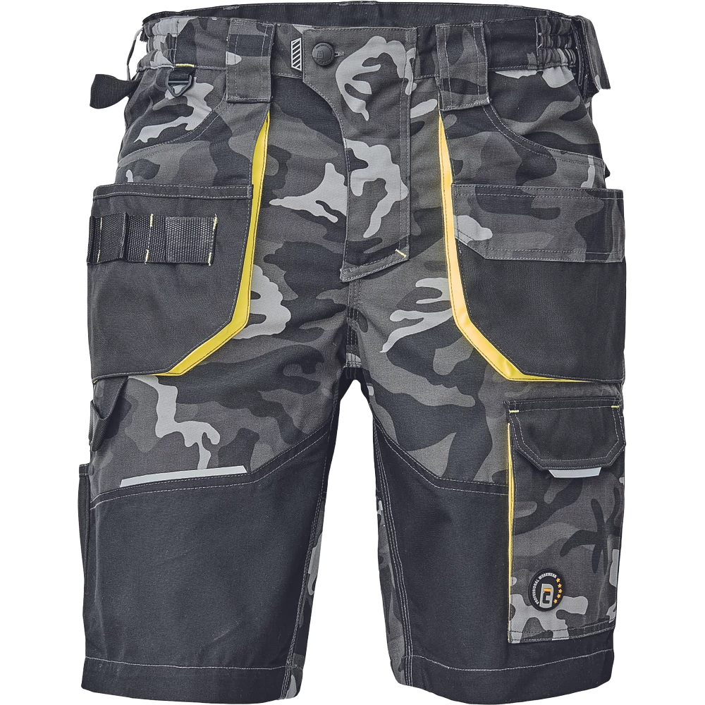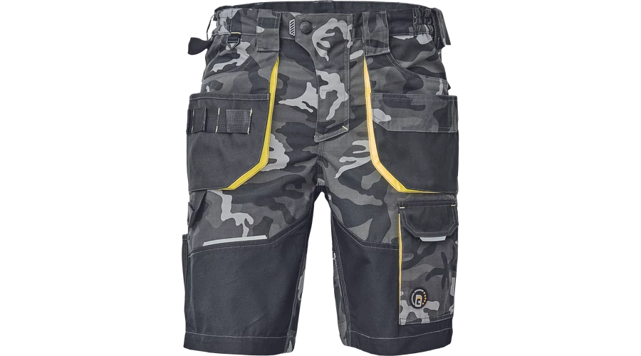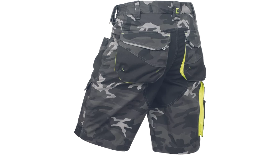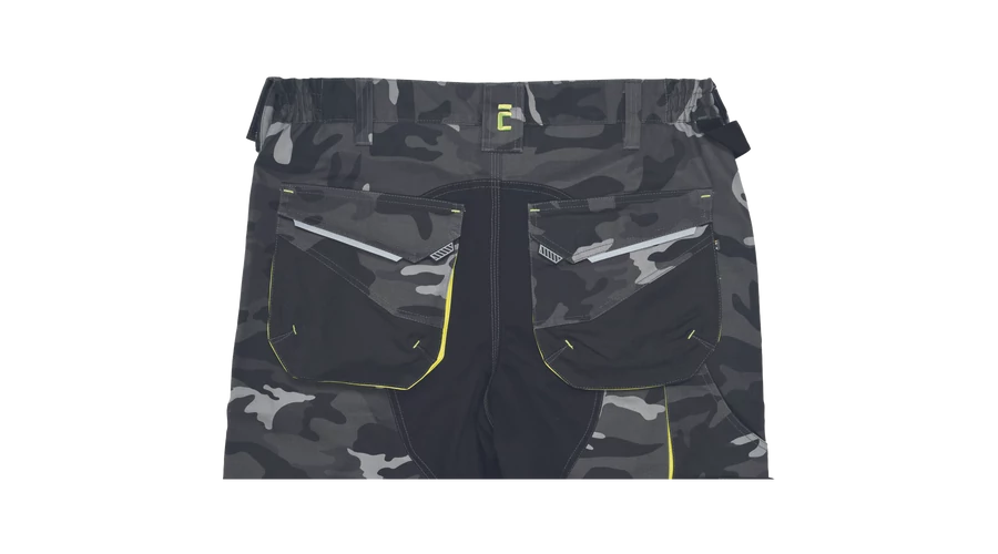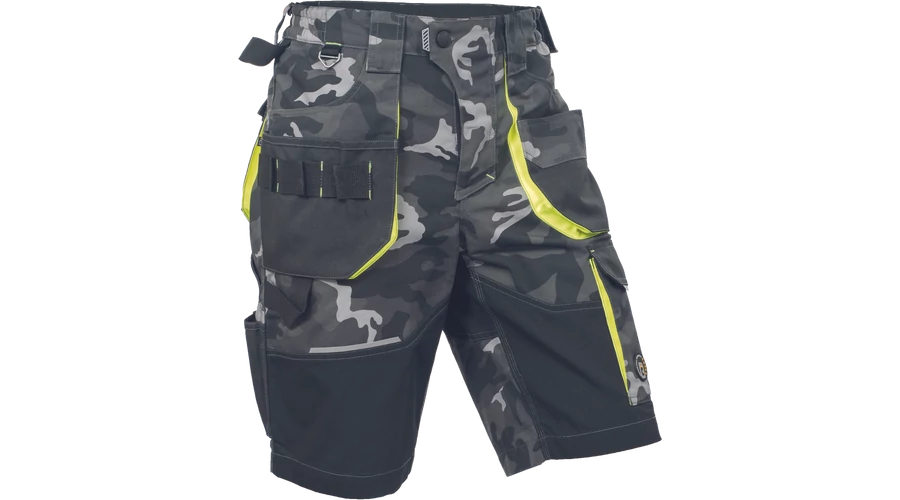- Férfi rövidnadrág rugalmas derékkal és többfunkciós zsebekkel - megerősített zsebek Oxford 600D anyagból - ellenálló hármas fedőző varrás az üleprészen és a szárakon - modern álcázási mintával