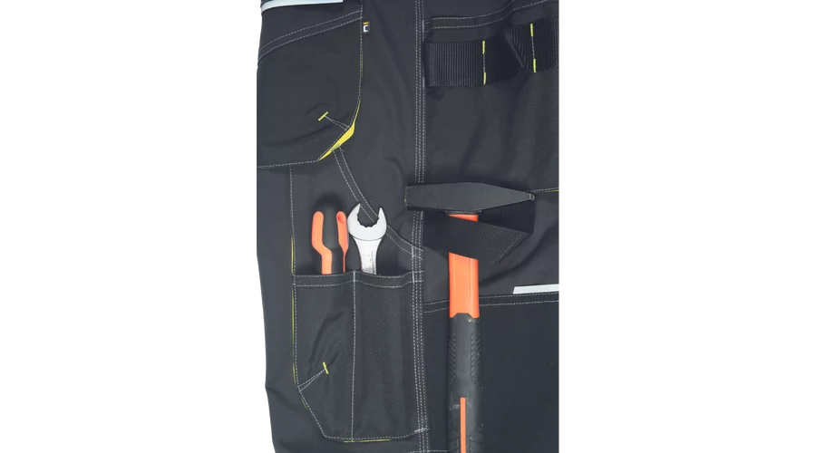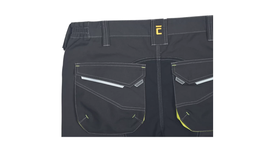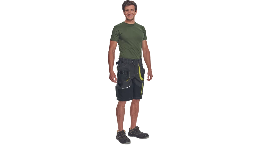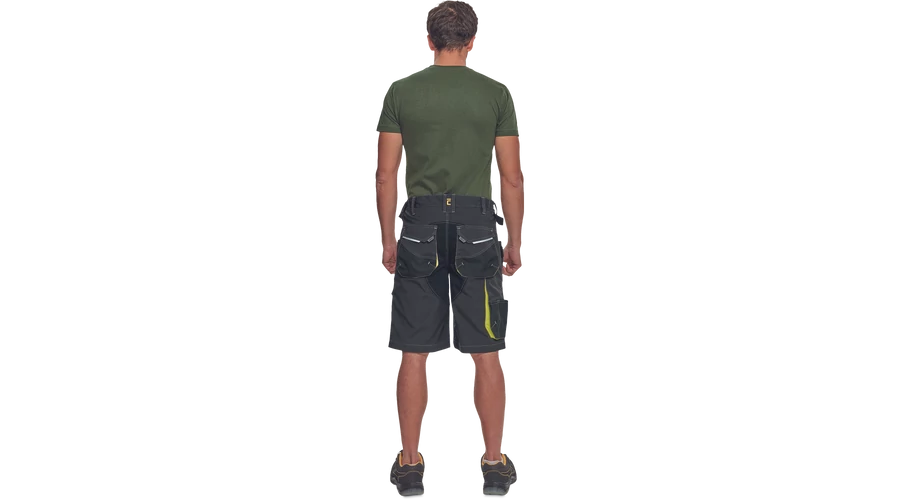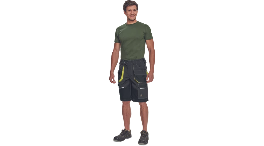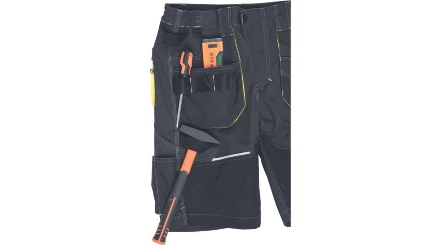 - férfi rövidnadrág rugalmas derékkal és többfunkciós zsebekkel - megerősített zsebek Oxford 600D anyagból - ellenálló hármas fedőző varrás az üleprészen és a szárakon