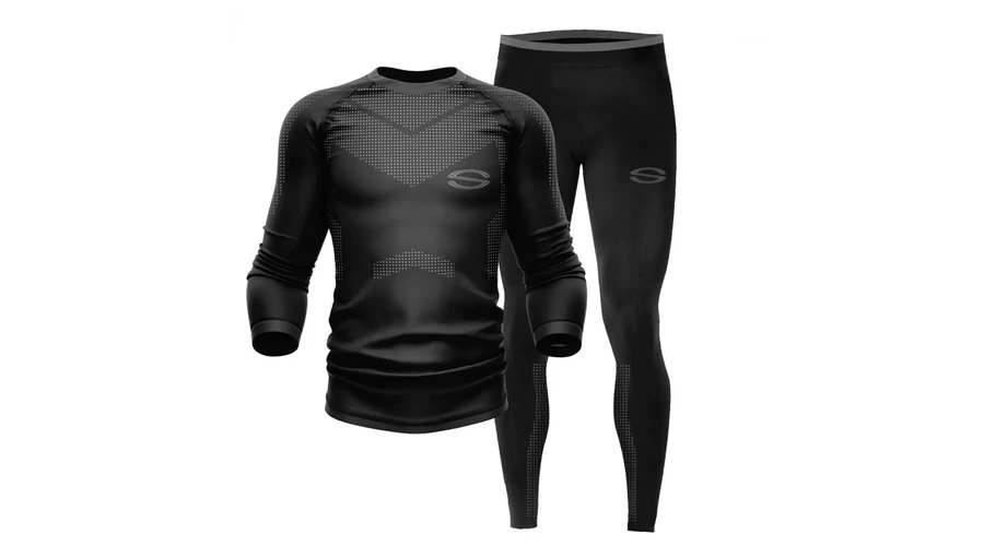 Varrat nélküli, kontrasztos betétekkel ellátott hosszű ujjú felsőrészből és alsonadrágból álló aláöltözet. Könnyű mozgást és kiemelkedő kényelmet biztosít. A szövetben található nylon anyag segíti fenntartani a testhőmérsékletet.