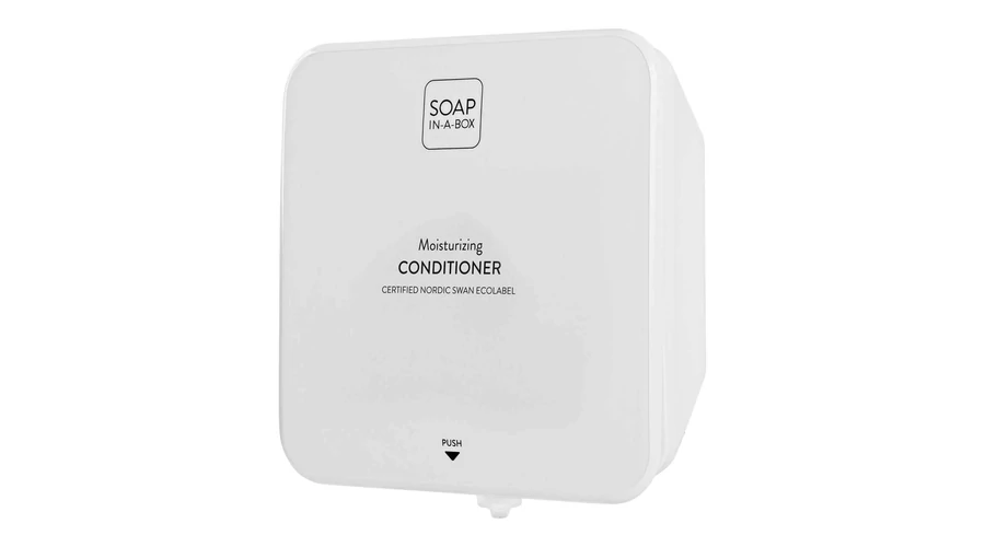 A Soap-In-A-Box adagoló koncepciója egyesíti az eleganciát és a hatékonyságot, miközben bőr- és környezetbarát. Az adagoló 450 ml-es, légmentesen záródó utántöltő tasakkal, 2 ml-es fix adaggal, amely átlagosan 225 kézmosást tesz lehetővé.