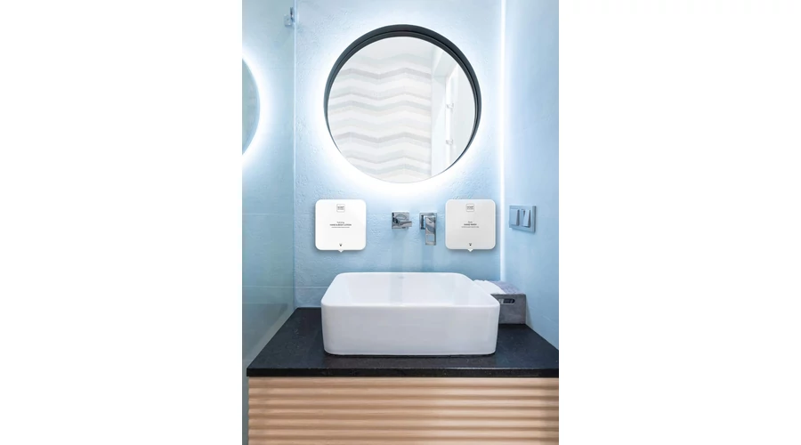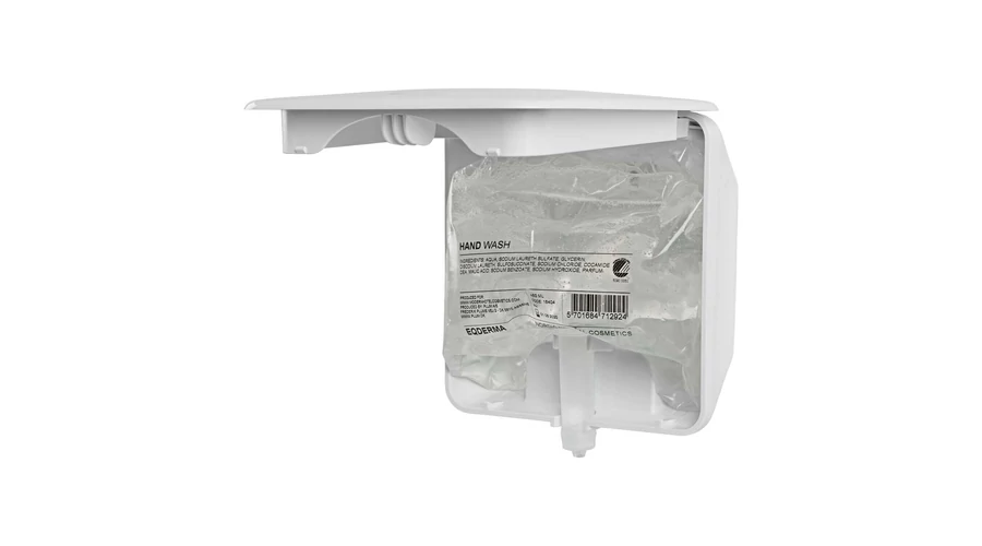 A Soap-In-A-Box adagoló koncepciója egyesíti az eleganciát és a hatékonyságot, miközben bőr- és környezetbarát. Az adagoló 450 ml-es, légmentesen záródó utántöltő tasakkal, 2 ml-es fix adaggal, amely átlagosan 225 kézmosást tesz lehetővé.