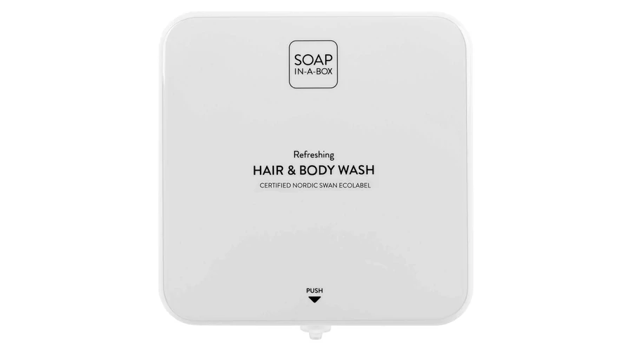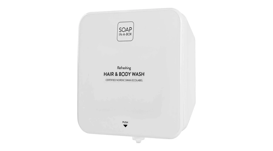 A Soap-In-A-Box adagoló koncepciója egyesíti az eleganciát és a hatékonyságot, miközben bőr- és környezetbarát. Az adagoló 450 ml-es, légmentesen záródó utántöltő tasakkal, 2 ml-es fix adaggal, amely átlagosan 225 kézmosást tesz lehetővé.
