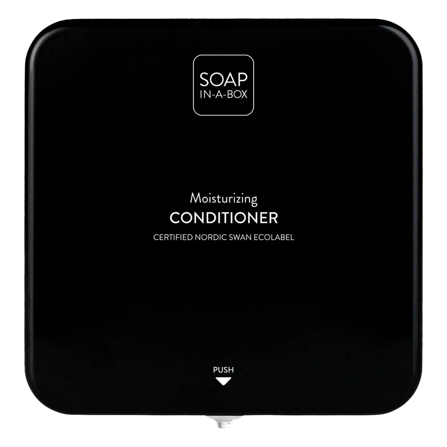 Soap-In-A-Box fényes fekete hajkondicionáló adagoló, előlap