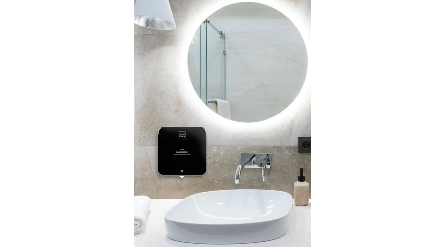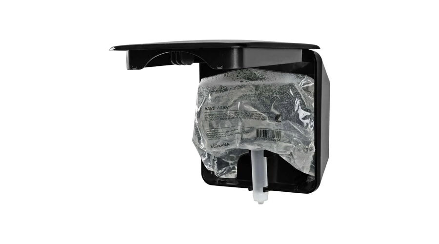 A Soap-In-A-Box adagoló koncepciója egyesíti az eleganciát és a hatékonyságot, miközben bőr- és környezetbarát. Az adagoló 450 ml-es, légmentesen záródó utántöltő tasakkal, 2 ml-es fix adaggal, amely átlagosan 225 kézmosást tesz lehetővé.