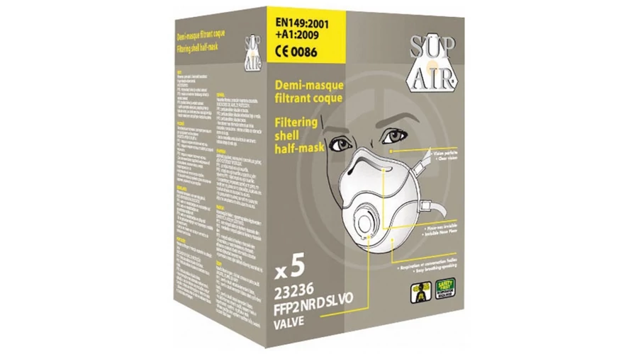 - külső pp-SMS, belső poliészter réteg, elektrosztatikus polipropilén közszűrő, légzést segítő szelep