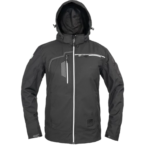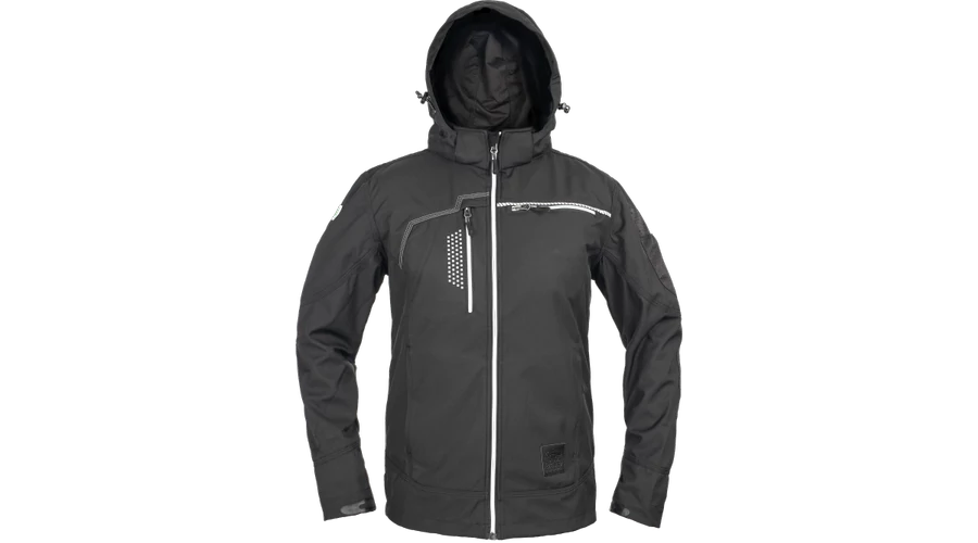 Modern szabású softshell dzseki, fényvisszavető cipzár, cipzáras napoleon zseb jobb oldalon (reflex cipzár), fülhallgató tartóval, Cordura megerősítés a váll-és a könyökrészen, levehető kapucni, kontrasztos varratok, fényvisszavető jelzőfolt és részletek, azonosítókártya a bal mellzsebre csatlakoztatható.