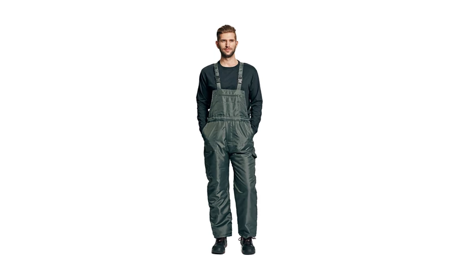 - bélelt mellesnadrág - szél- és vízálló kivitel - oldalsó patentos záródással - PVC csatokkal állítható pántokkal - praktikus zsebekkel és kalapácstartóval
