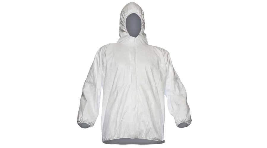 TYVEK DZSEKI: • antisztatikus cipzáros dzseki, gumírozott ujjakkal, derékkal és kapucnival • EU szabvány: EN340