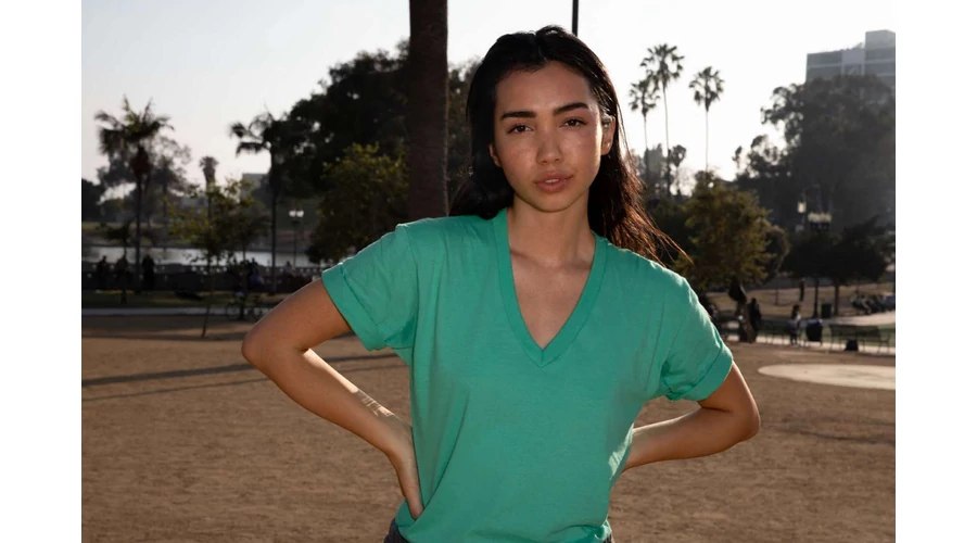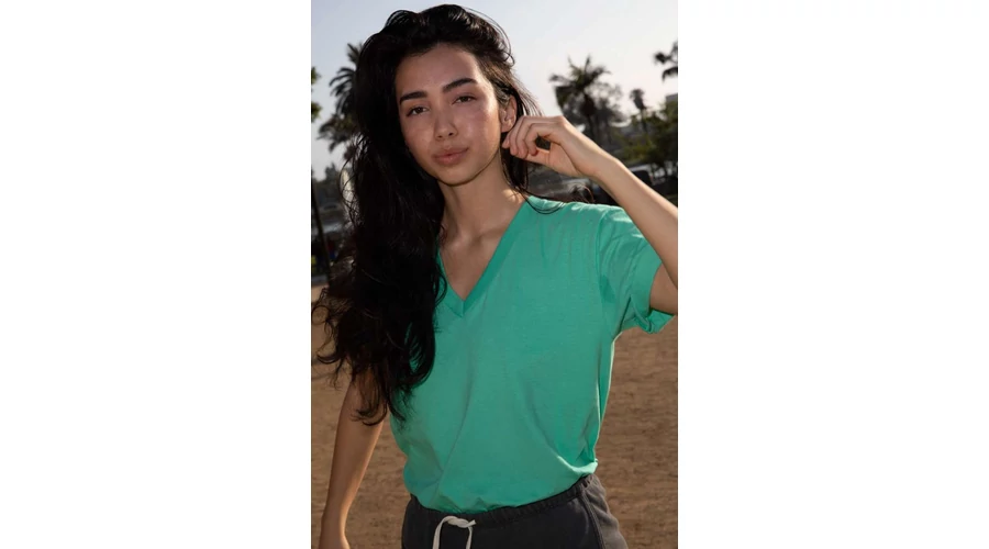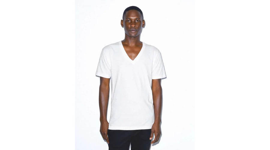 146g/m2;100% gyűrűs fonású fésült pamut;30/1 öltéssűrűségű;Válltól vállig megerősítve;2.2 cm széles "klasszikus" derékszögű v-nyak;2.5 cm széles dupla tűzésű karkivágás és derékrész;Szatén címke;Oldalvarrott;100% pamut cérna a fehér pólókon;