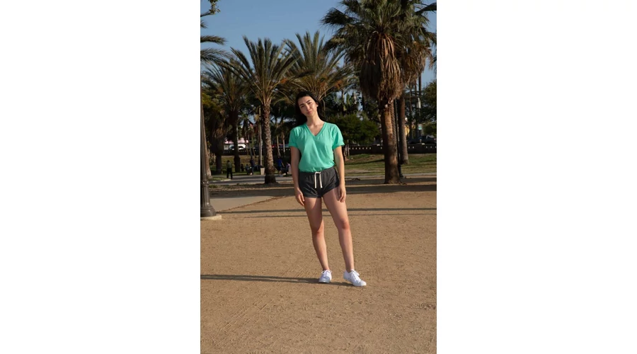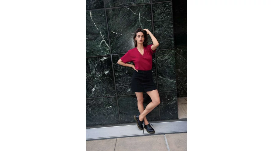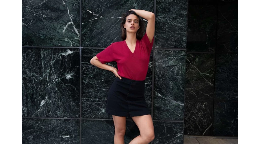 Szabás: Rövid ujjú, V-nyakú, Körkötött
