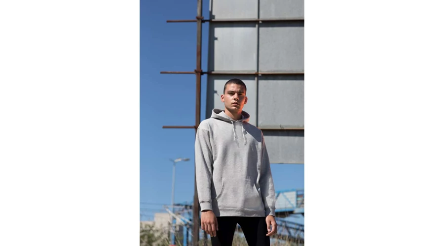 60% Cotton. 40% Polyester Brushed Back Fleece;Oversized pullover hoody;Set-in sleeves;Deep ribbed hem and cuffs;Kangaroo front pocket;2-piece hood. with single jersey lining and twin-needle cover-stitch detail;Functional flat lace drawcord. with stitched eyelets;Single-jersey back neck facing and back neck tape;Twin-needle topstitching at neck and armhole;Tear-out label. for easy re-branding;