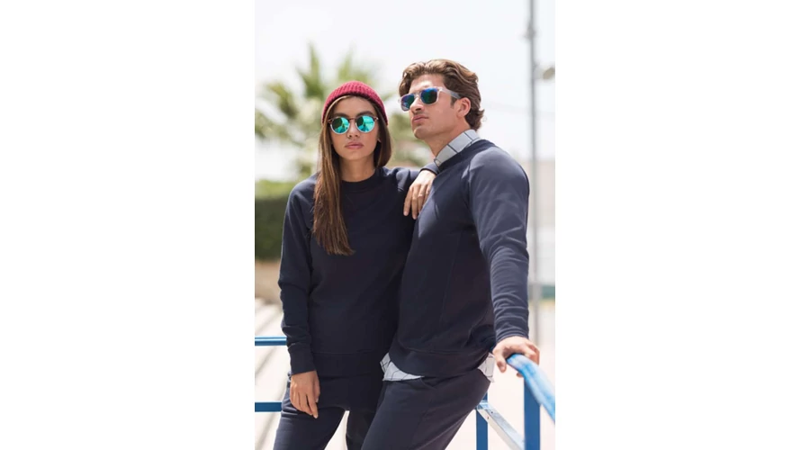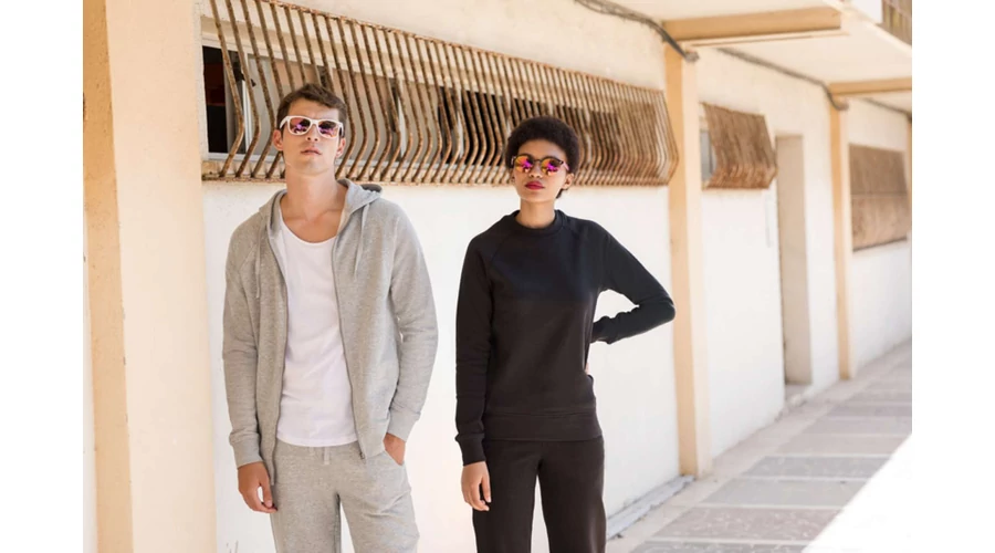 60% Cotton. 40% Polyester Brushed Back Fleece;Unisex slim fit;Self-fabric side panels. with stitched eyelet detail;Stretch ribbed crew neck. hem. and cuffs;Raglan sleeves;Single jersey back-neck tape and locker patch;Tonal coverstitch detail;