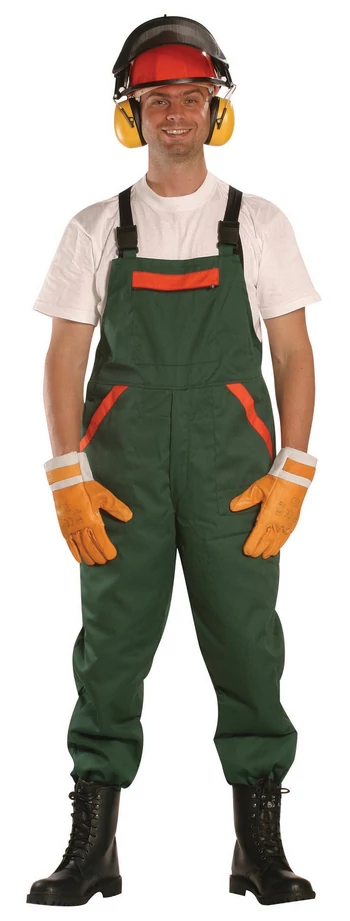 • kézi láncfűrészek elleni védőruha: kopásálló poliészter és szellőző pamut alapanyagok keveréke