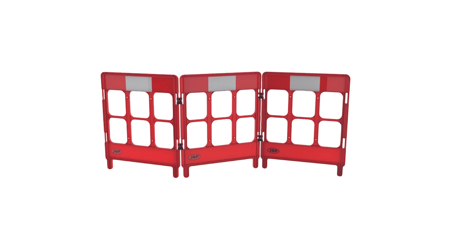 Workgate® 3 Gate with Reflectives - Red The WorkGate® is a robust mini barrier designed with contractors in mind. Supplied as 3 or 4 gate versions offering a very versatile solution to many environments and requirements. Reflective Panel Fully reflective panel meeting EN 12899-1 requirements. Flexible Linking Black adjoining clips give flexible multi positioning configurations. Handles Convenient handles with moulded finger grips make the WorkGate® especially easy to manoeuvre. Contractor Branding Large area to allow contractor details to be applied in decal form. Feet Optional anti-trip feet create a more stable WorkGate® for linear usage. Options The WorkGate® can be linked to for a square, a triangle or in a single line making it practical for most uses and environments. Recyclable Contains no metal parts, making it ideal for working in electrical environments and easy to recycle. Temporary Signage Locating holes enable courtesy or pedestrian signs to be fitted.