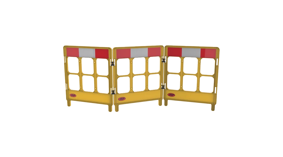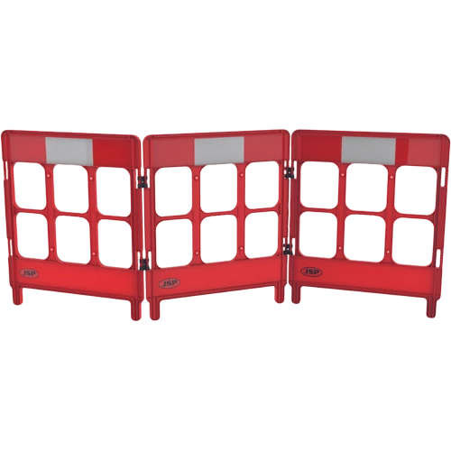 Workgate® 3 Gate with Reflectives - Red The WorkGate® is a robust mini barrier designed with contractors in mind. Supplied as 3 or 4 gate versions offering a very versatile solution to many environments and requirements. Reflective Panel Fully reflective panel meeting EN 12899-1 requirements. Flexible Linking Black adjoining clips give flexible multi positioning configurations. Handles Convenient handles with moulded finger grips make the WorkGate® especially easy to manoeuvre. Contractor Branding Large area to allow contractor details to be applied in decal form. Feet Optional anti-trip feet create a more stable WorkGate® for linear usage. Options The WorkGate® can be linked to for a square, a triangle or in a single line making it practical for most uses and environments. Recyclable Contains no metal parts, making it ideal for working in electrical environments and easy to recycle. Temporary Signage Locating holes enable courtesy or pedestrian signs to be fitted.