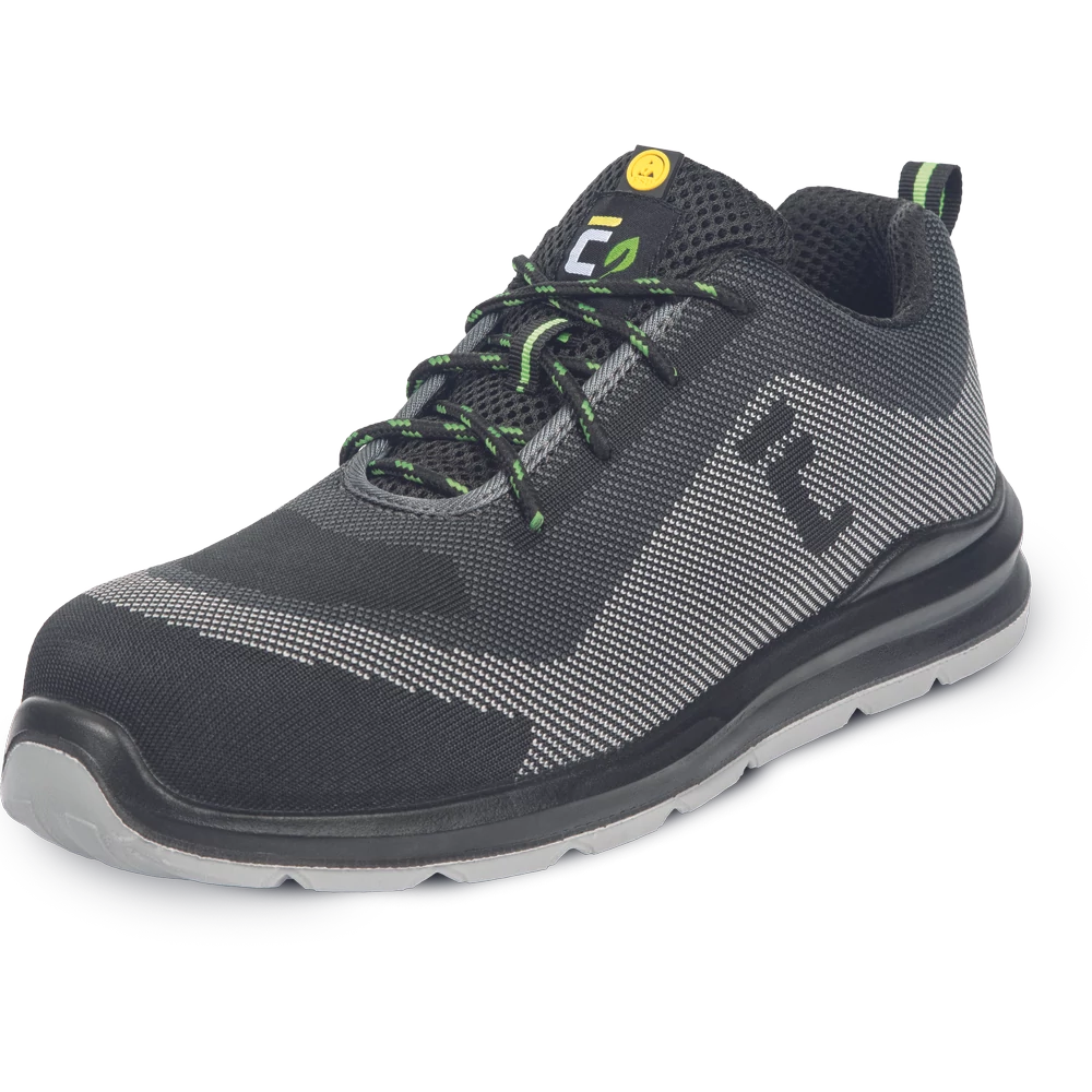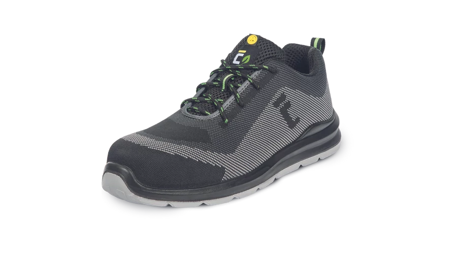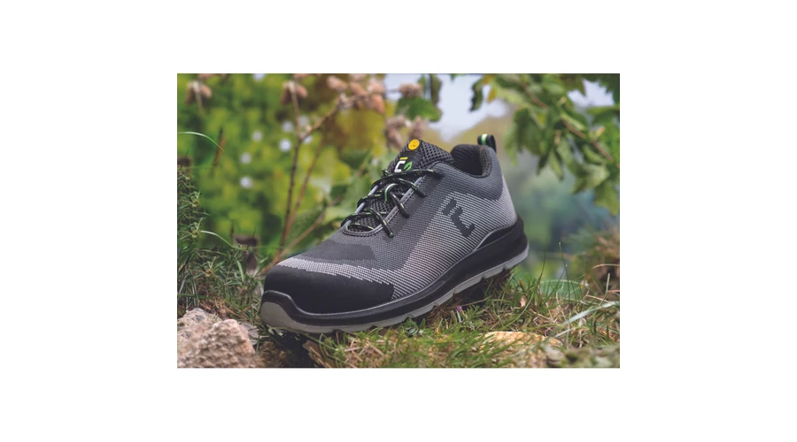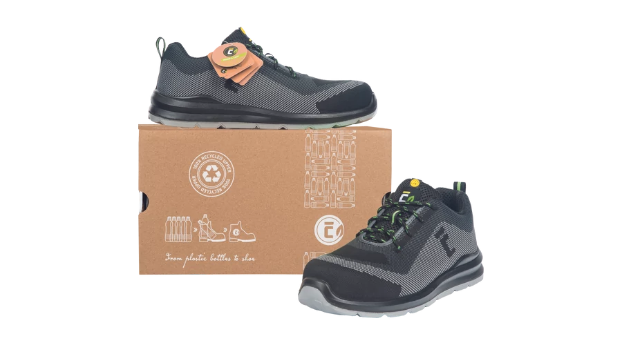 Lábujjvédő: kompozit Átszúrás elleni köztalp: kompozit Felső rész: újrahasznosított poliészter Talp: dupla sűrűségű poliuretán Bélés: poliészter háló